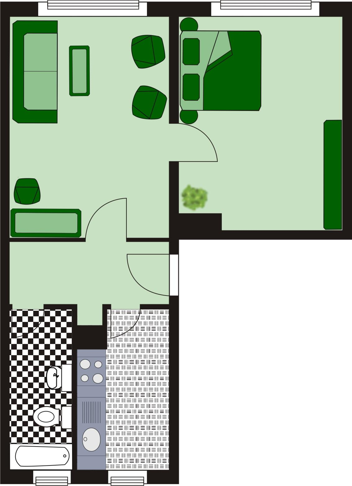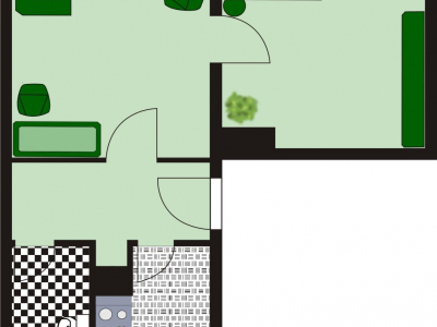 Eine helle 2 Raum Wohnung mit Wohnzimmer, Schlafzimmer, Küche, Keller und einem Bad mit Tageslicht.