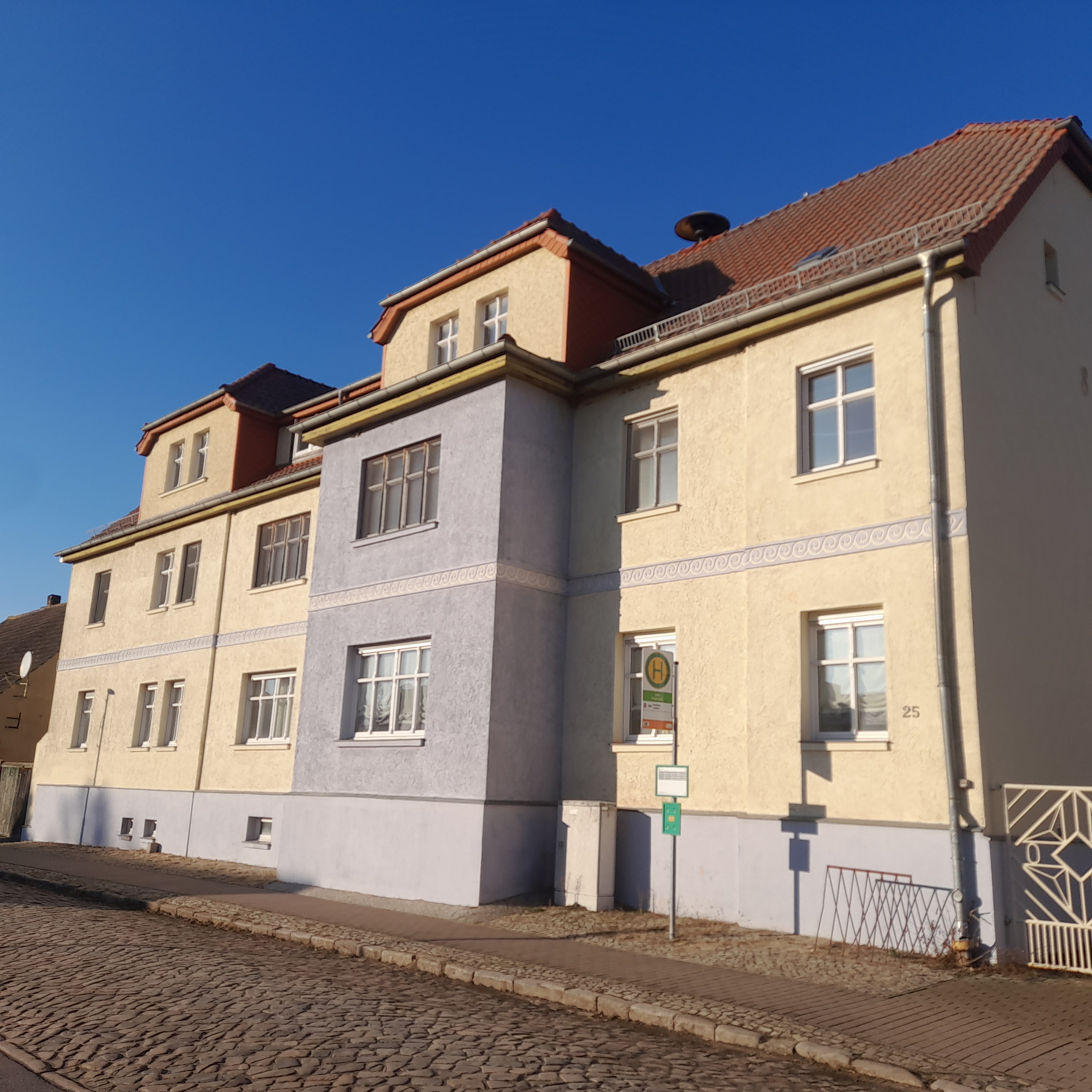 Die Wohnung liegt zentral im Ortskern von Lübs. Die Gemeinde befindet sich rund 15 km von der Stadt Gommern entfernt und zeichnet sich durch ihre verkehrsgünstige Lage aus. Über die Anbindung an die Deutsche Bahn sind sowohl die Landeshauptstadt Magdeburg als auch Dessau in etwa 30 Minuten erreichbar, wodurch eine sehr gute regionale Erreichbarkeit gegeben ist. Ergänzend zur Anbindung an den öffentlichen Nahverkehr bietet die Lage auch für den Radverkehr attraktive Voraussetzungen. Der Elberadweg verläuft in unmittelbarer Nähe und ermöglicht eine komfortable Anbindung über gut ausgebaute Radwege. Im Ort selbst sehen eine Kindertagesstätte, mehrere Spielplätze sowie verschiedene Sportstätten zur Verfügung und tragen zu einer familienfreundlichen Infrastruktur bei. Eine Bushaltestelle befindet sich direkt gegenüber der Wohnung und gewährleistet eine bequeme Nutzung des öffentlichen Personennahverkehrs.